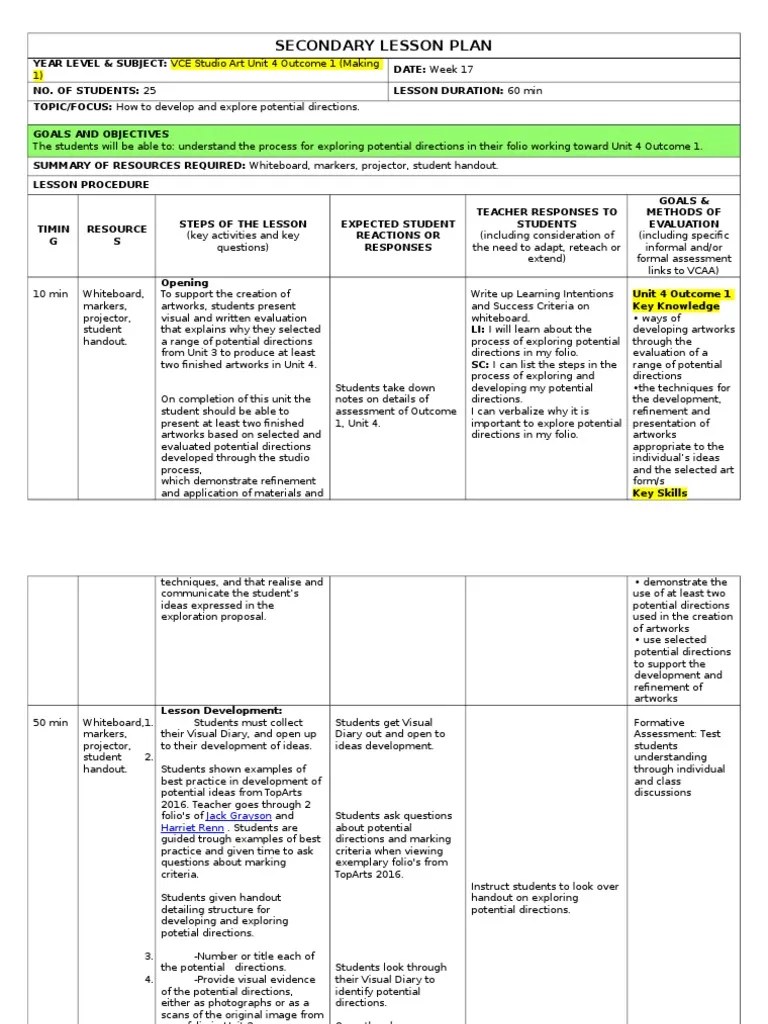 Secondary Education Lesson Plan Template Doc Template pdfFiller